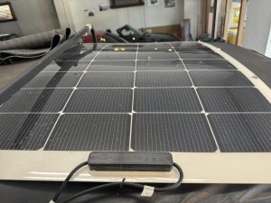 まずは、サブバッテリーを充電するためのソーラーパネルを屋根に取り付ける・・ ルーフキャリアも取り付けるので、極力前にレイアウトして、 リカバリーできるようにホ