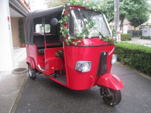 スタンダードタイプのオートリキシャ 車両本体価格 780,000円(税別)(別途諸費用が掛かります) 運転資格 普通自動車免許(AT限定可)カテゴリーは側車付軽二輪 前1人後ろ
